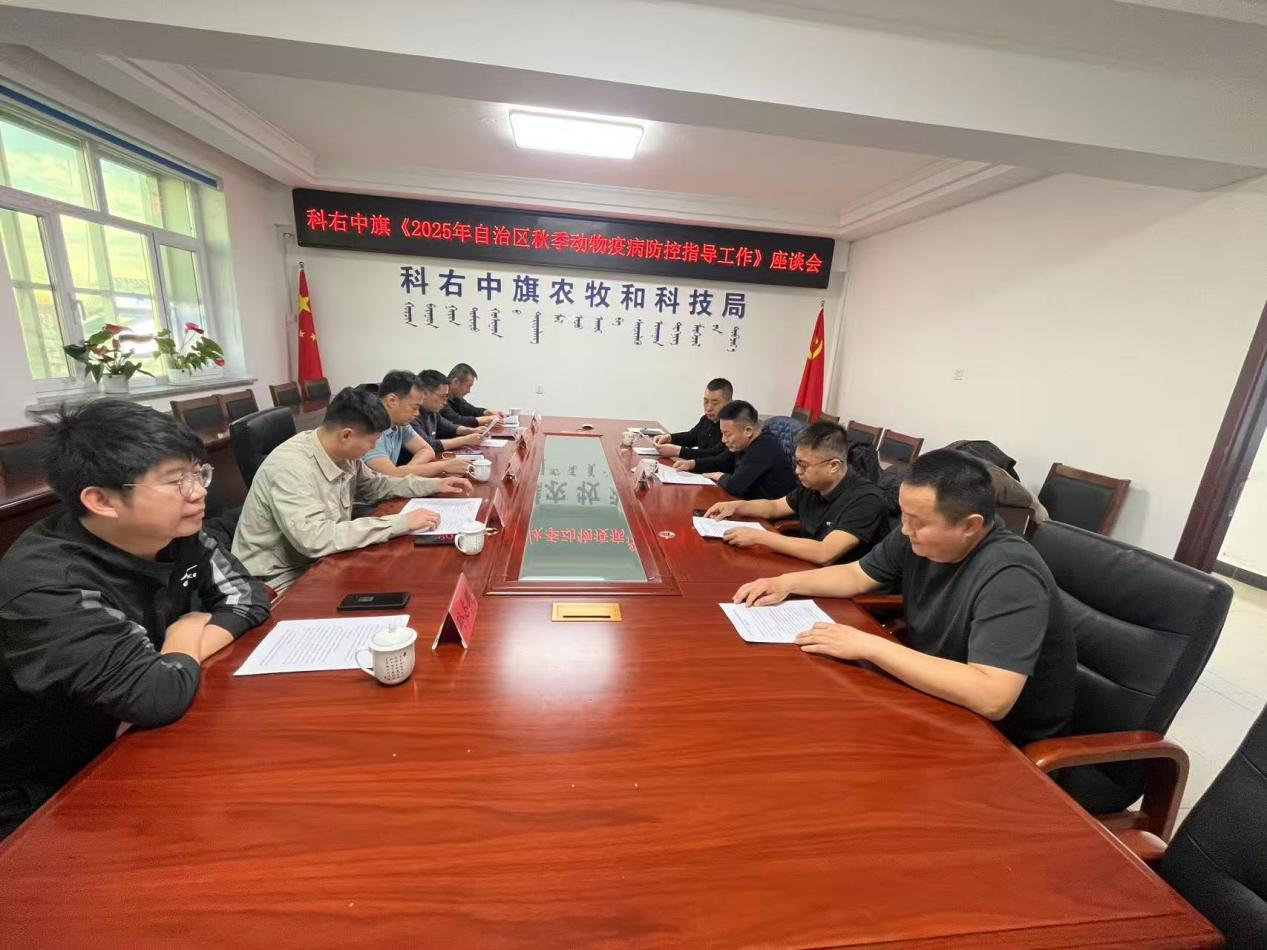 检查组首站抵达科右中旗农科局,召开专题座谈会。双方聚焦秋季集中免疫进度、布病等人畜共患病防控举措、“先打后补”政策落地成效等关键议题深入交流。检查组结合边境地区防疫经验,针对免疫档案规范化管理、防控流程优化等方面提出具体指导建议,为科右中旗完善防疫机制提供方向。